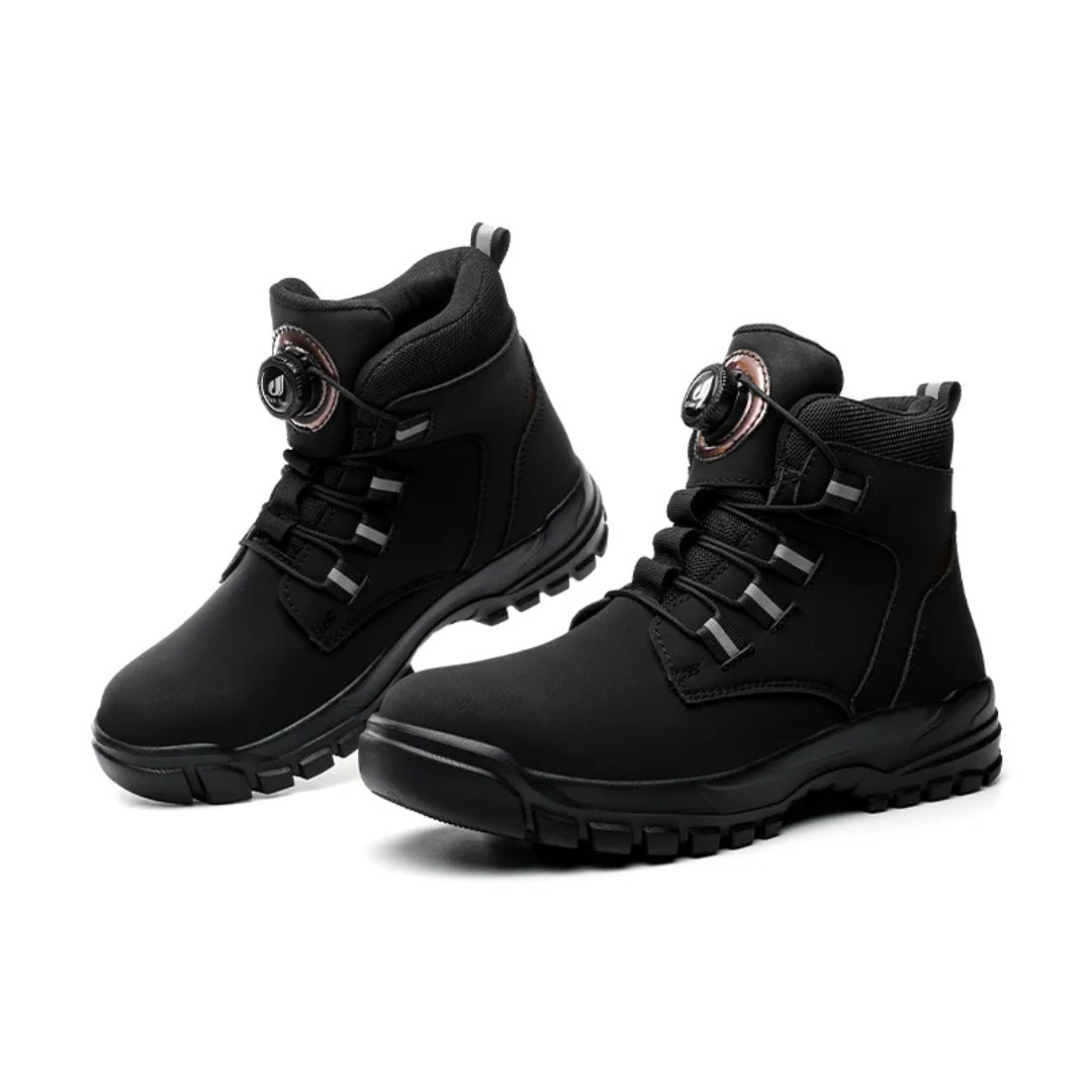 Titan Ranger™ steht für Stahlkappe, Kevlar-Zwischensohle, rutschfeste Profilsohle, halbhohen Schaft und Drehverschluss-System in einem kraftvollen Outdoor-Design.